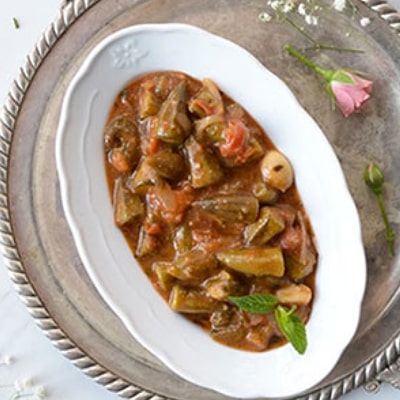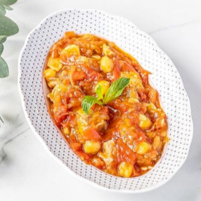 Eggplants Cooked With Chick Peas And Tomato Sauce.