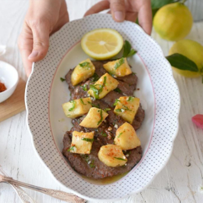 Fatless grilled beef marinated in a garlic lemon sauce