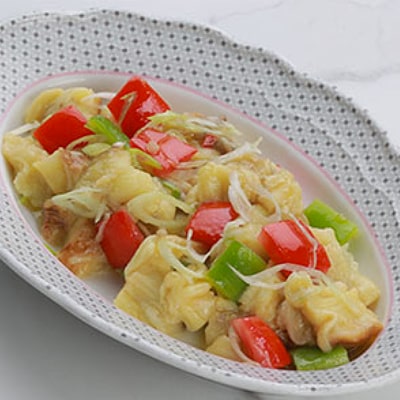 Eggplant mixed tomatoes, chopped green onion, green pepper and lemon in virgin oil
