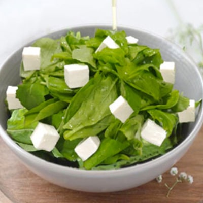 Rocca leaves, fetta cheese, lemon juice and extra virgin olive oil.