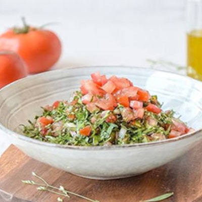 Mixed salad of parsley, tomatoes and onions with lemon dressing