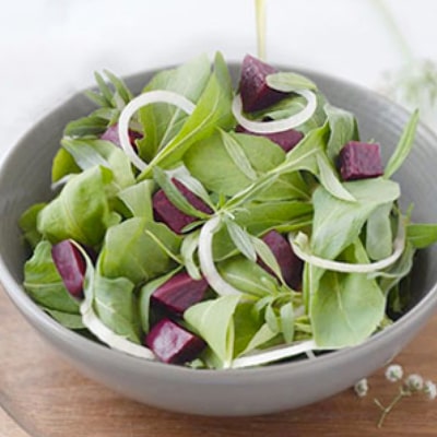 Rocca leaves, beetroot, onions, lemon juice and extra virgin olive oil.